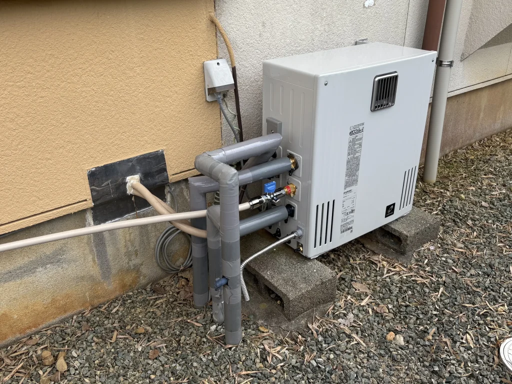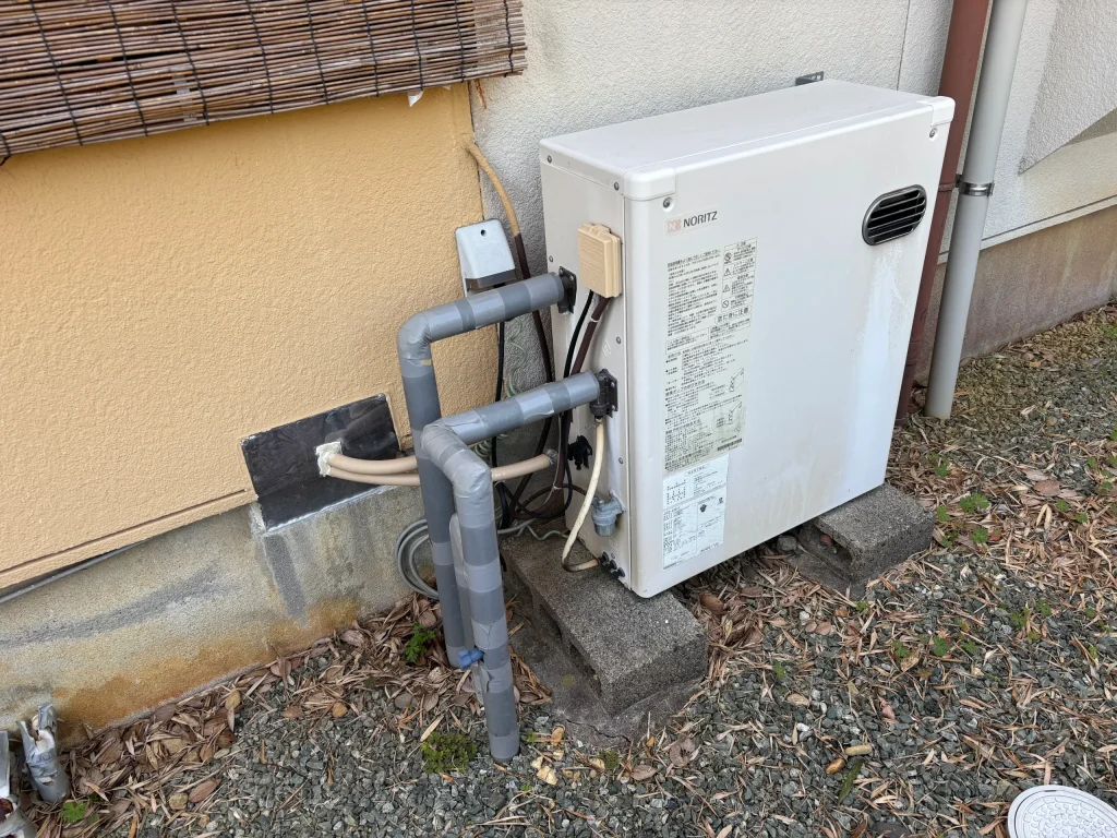 浜松市中央区で、ノーリツ製灯油ボイラーからパーパス製ガス給湯器 GX-H2001AR-1 へ交換した事例です。