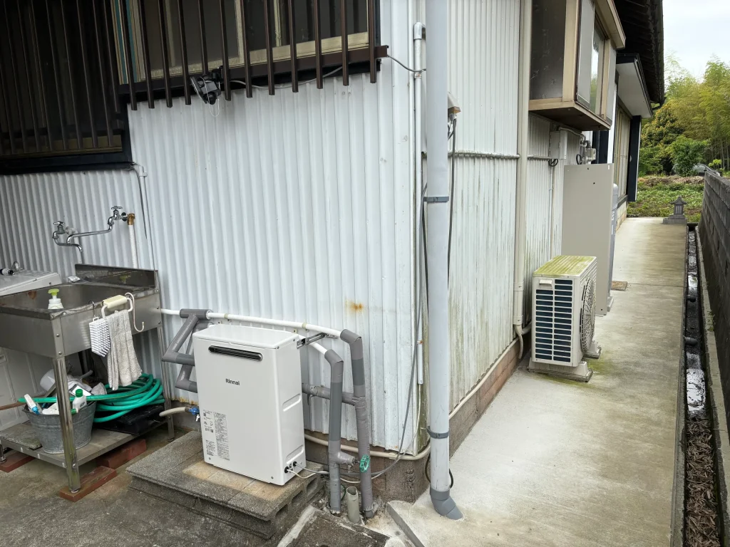 浜松市中央区で、長府製灯油ボイラーからリンナイ製ガス給湯器 RUX-A2403G(A) へ交換した事例です。