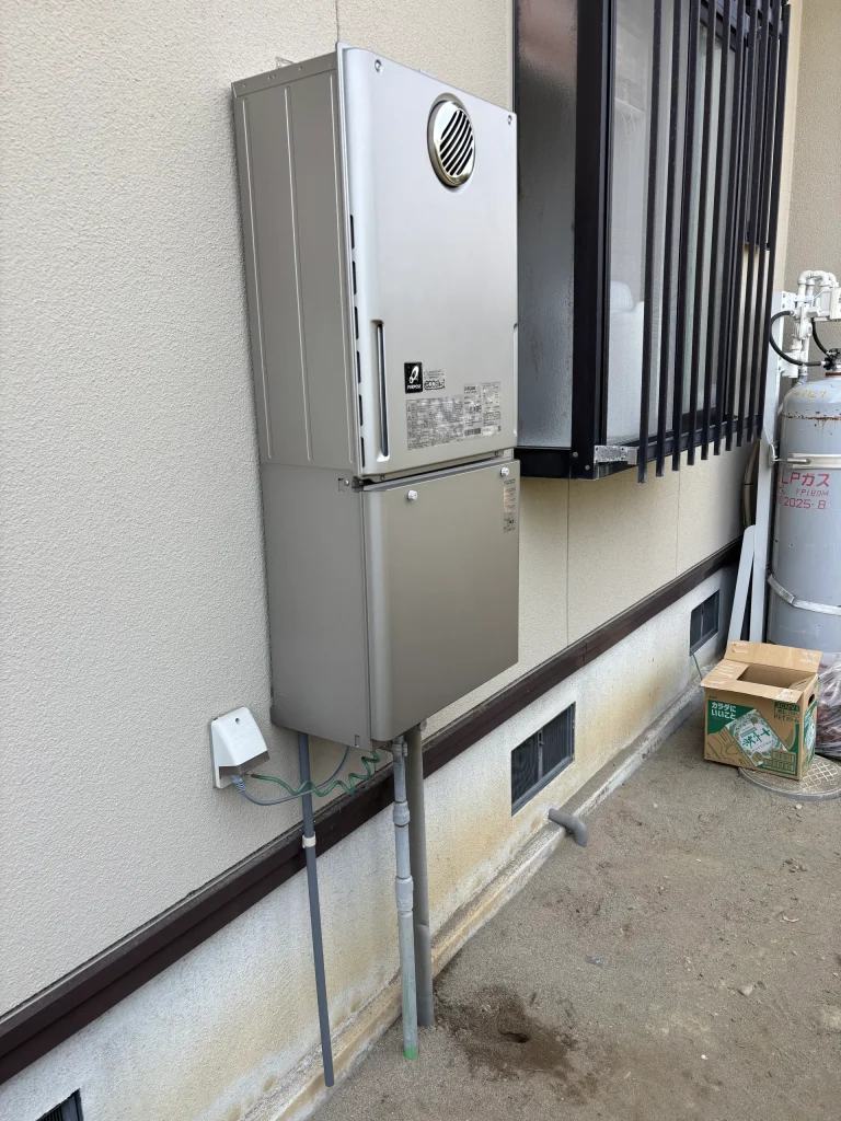 浜松市中央区で、パーパス製ガス給湯器 GX-HFL240AW へ交換した事例です。