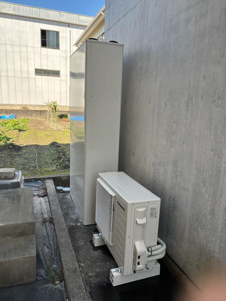 富士市で、ナショナル製エコキュートからパナソニック製エコキュート HE-H46LQS へ交換した事例です。