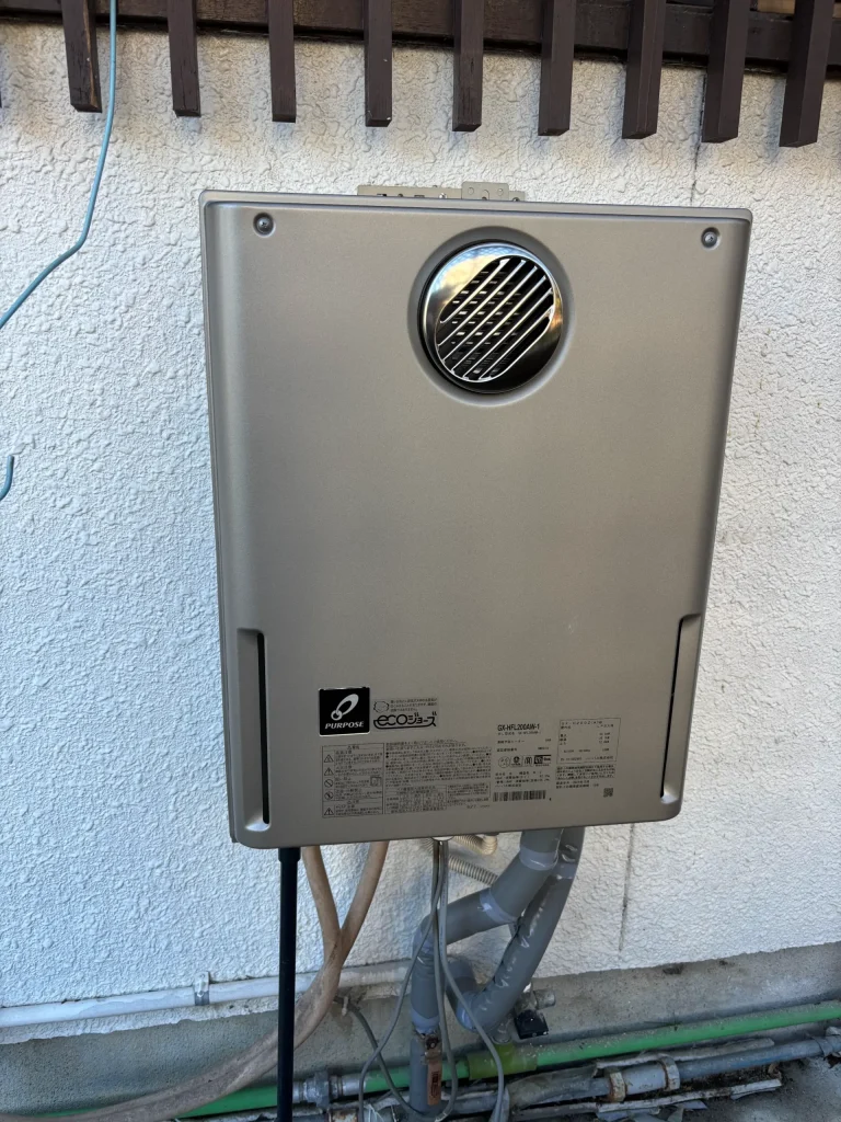 浜松市浜名区で、リンナイ製ガス給湯器からパーパス製ガス給湯器 GX-HFL200AW へ交換した事例です。