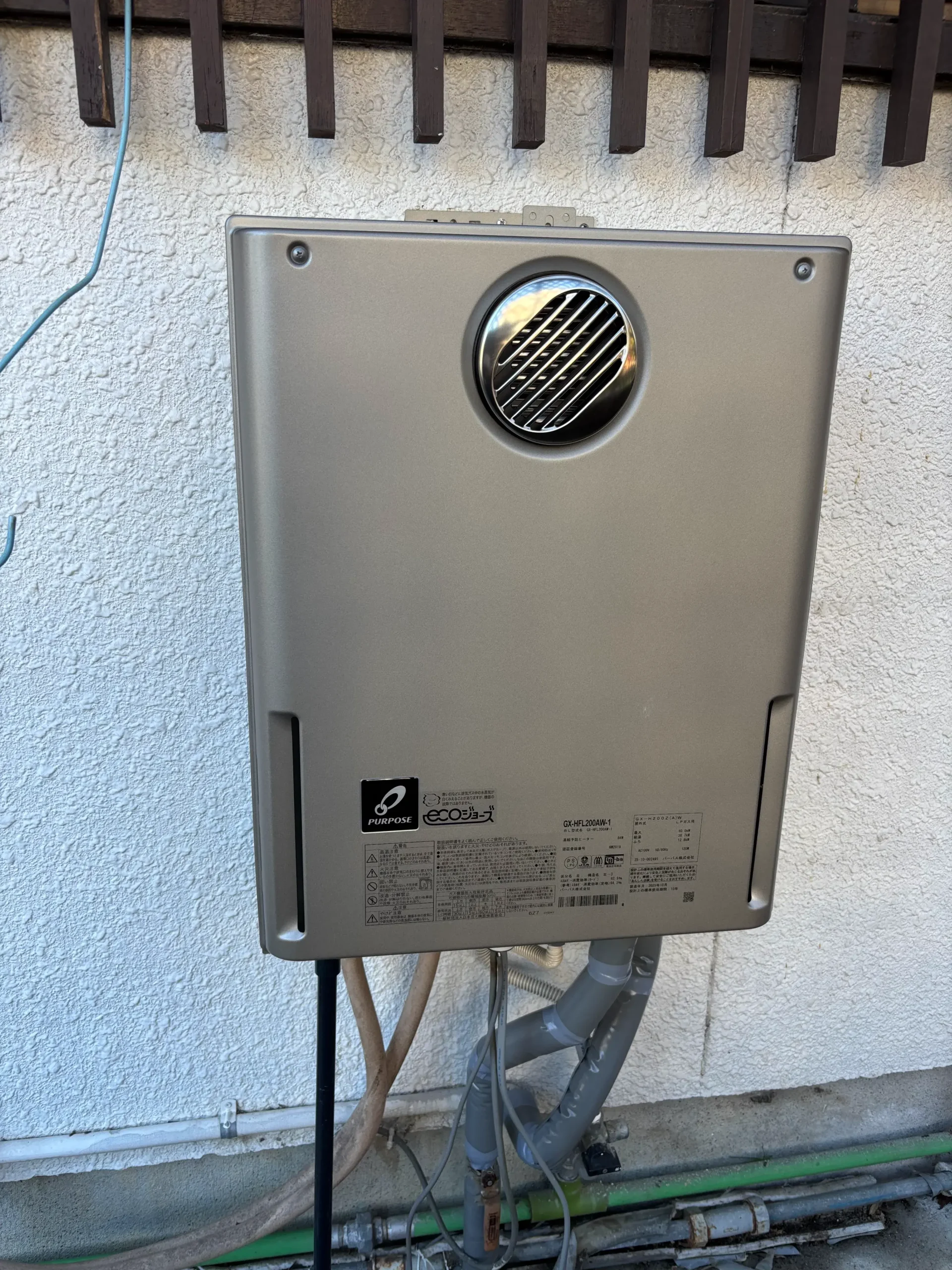 浜松市浜名区で、パーパス製ガス給湯器 GX-HFL240AW へ交換した事例です。