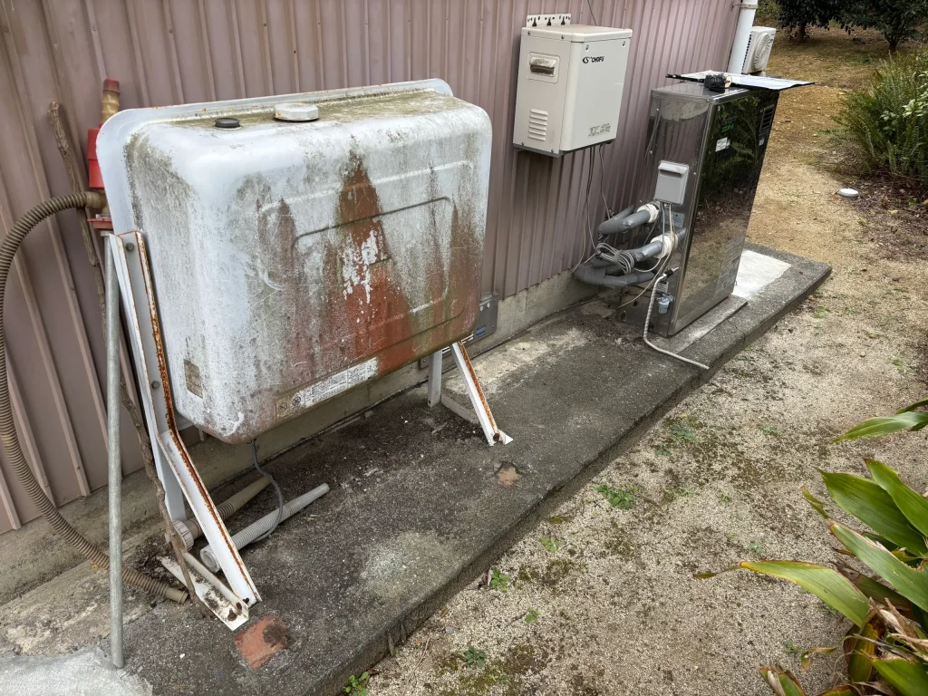 浜松市中央区で、灯油ボイラーからリンナイ製ガス給湯器 RUF-UE2405AG へ交換して事例です。