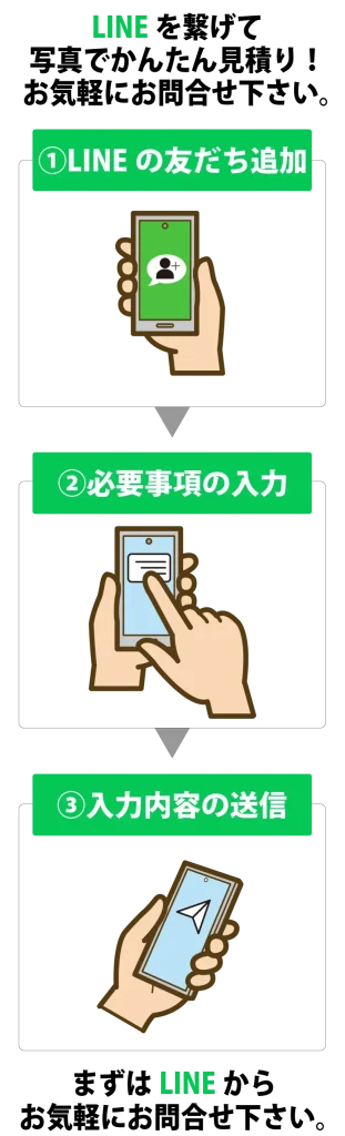 弊社公式LINEにご登録いただき、自動メッセージに従ってお見積りができます。